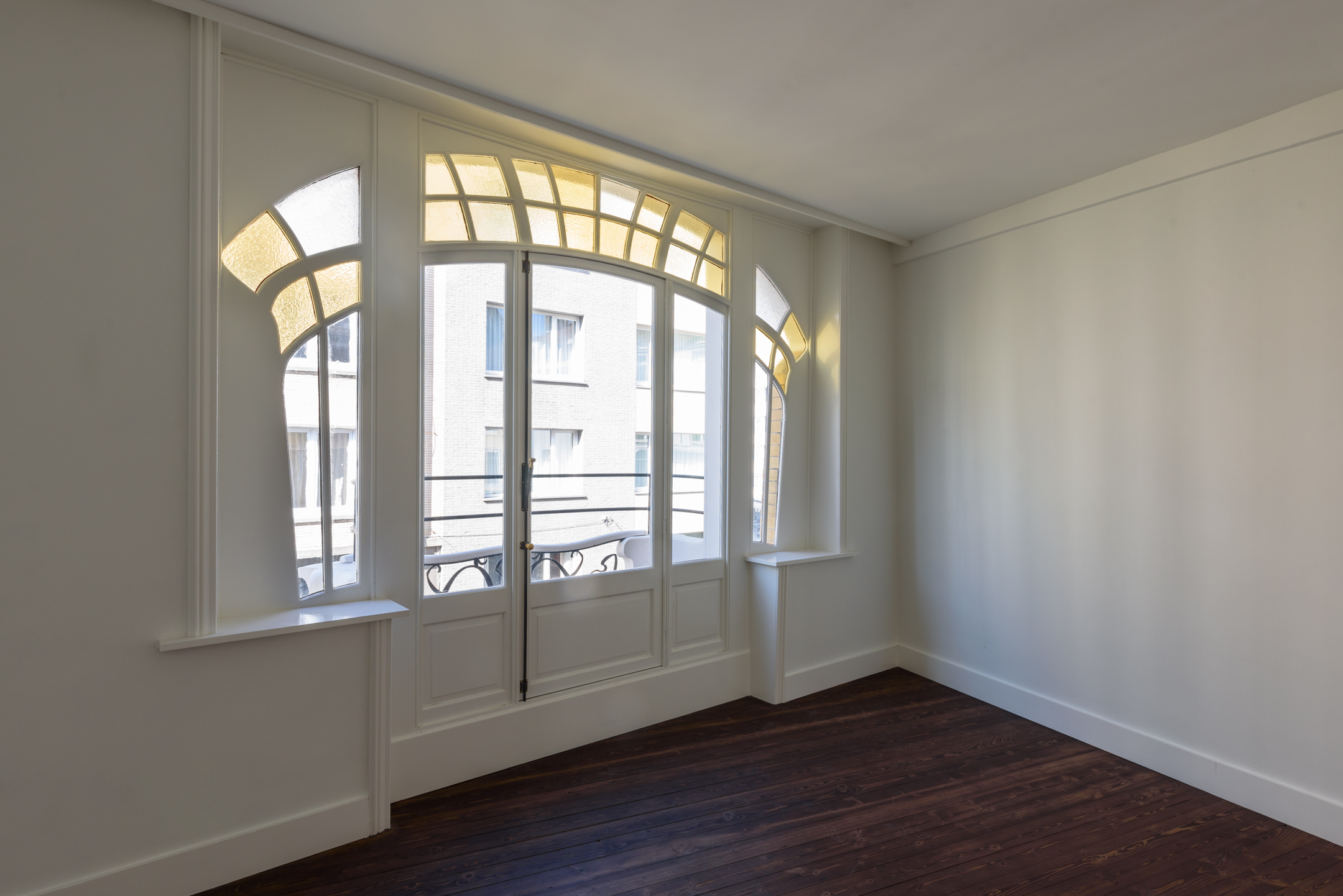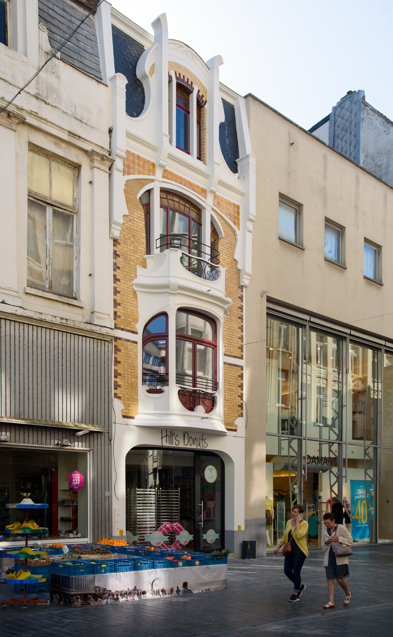 De originele winkelpui die te zien is op de oude foto was helaas al verdwenen, het schrijnwerk op de verdiepingen van de voorgevel was wel nog origineel werd minutieus gerestaureerd. De leefruimtes op de verdiepingen kregen door de grote ramen en de link met de terrassen aan de achtergevel een nieuwe ruimtelijkheid die aansluit bij het art-nouveau concept van een grondplan.